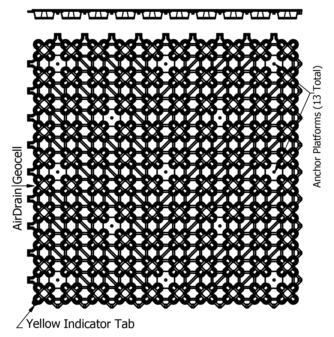 AirDrain is a Geocell drainage grid that creates a 1 inch 92% air void underneath your artificial turf. AirDrain elevates the synthetic turf above the subgrade to allow air to circulate and water to pass through rapidly. It helps keeps the surface temperature at lower levels due to its ability to allow continuous movement of air. AirDrain is made from 100% recycled copolymer, making it able to withstand extreme heat and cold and still maintain its performance.
